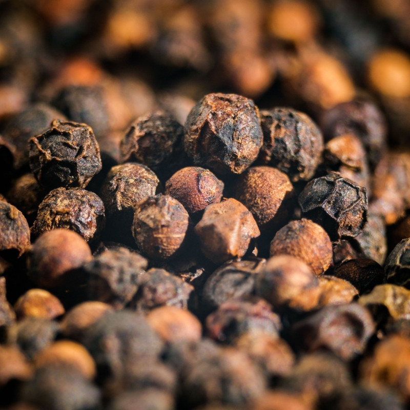 Le poivre (piper nigrum) est une épice majeure, la plus importante en production dans le monde. Le poivrier est une liane grimpante qui peut atteindre dix mètres de hauteur. Le poivre se présente alors sous la forme d’une grappe pendante, formée de vingt à trente grains serrés autour de la tige.